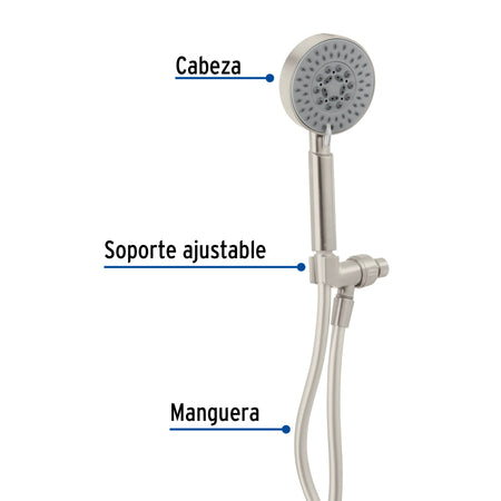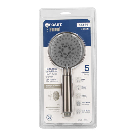 Regadera satín de teléfono 4' con soporte, Foset Element, 45166