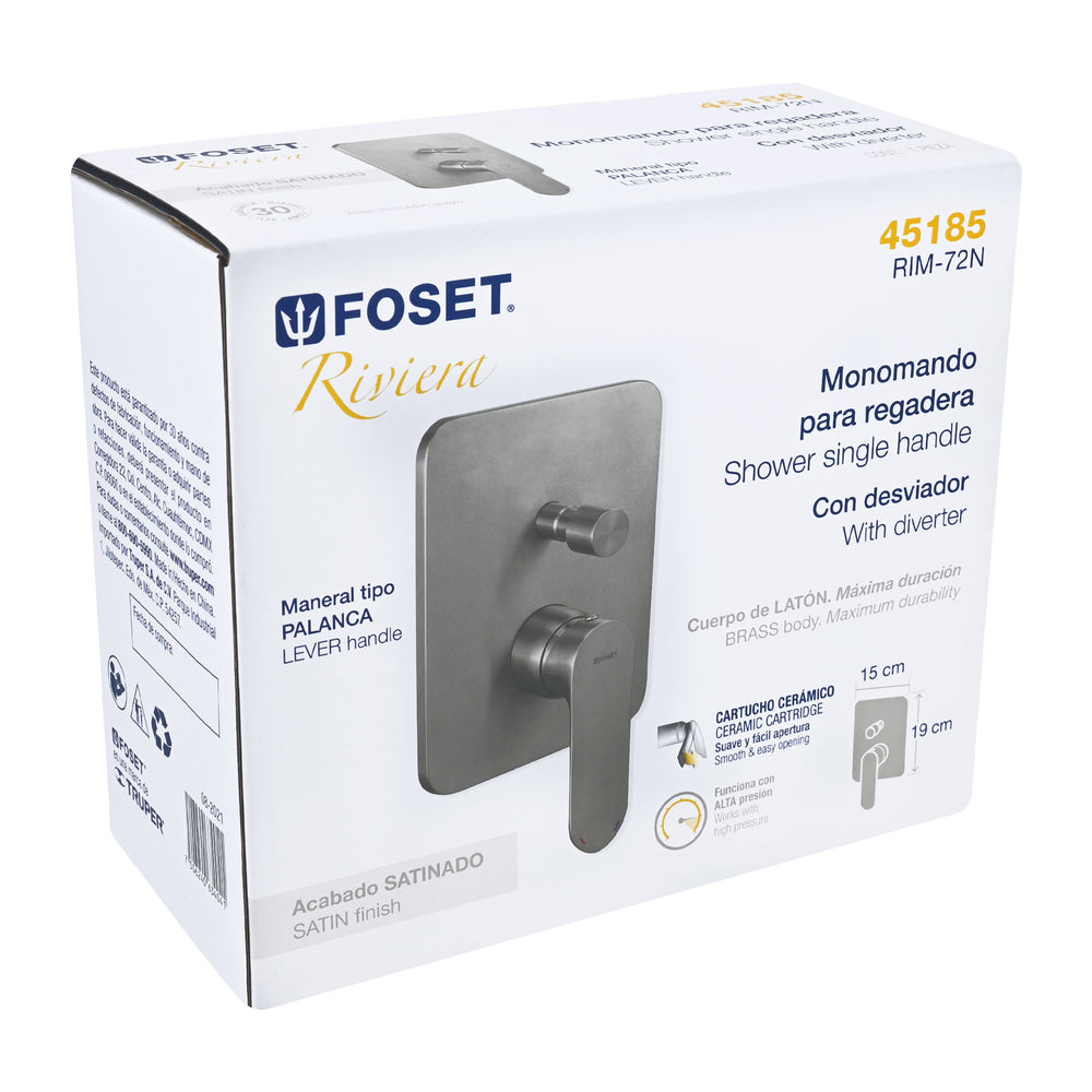 Monomando satín para regadera o tina con desviador, Foset, 45185Monomando satín para regadera o tina con desviador, Foset, 45185Monomando satín para regadera o tina con desviador, Foset, 45185