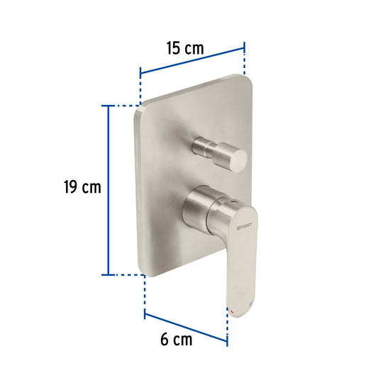 Monomando satín para regadera o tina con desviador, Foset, 45185