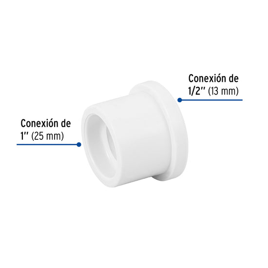 Reducción bushing de PVC 1 x 1/2', Foset Caja con 10, 45427