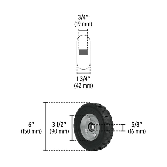 Rueda de hule sólido 6' para diablo, un balero, Pretul Caja con 4, 45481