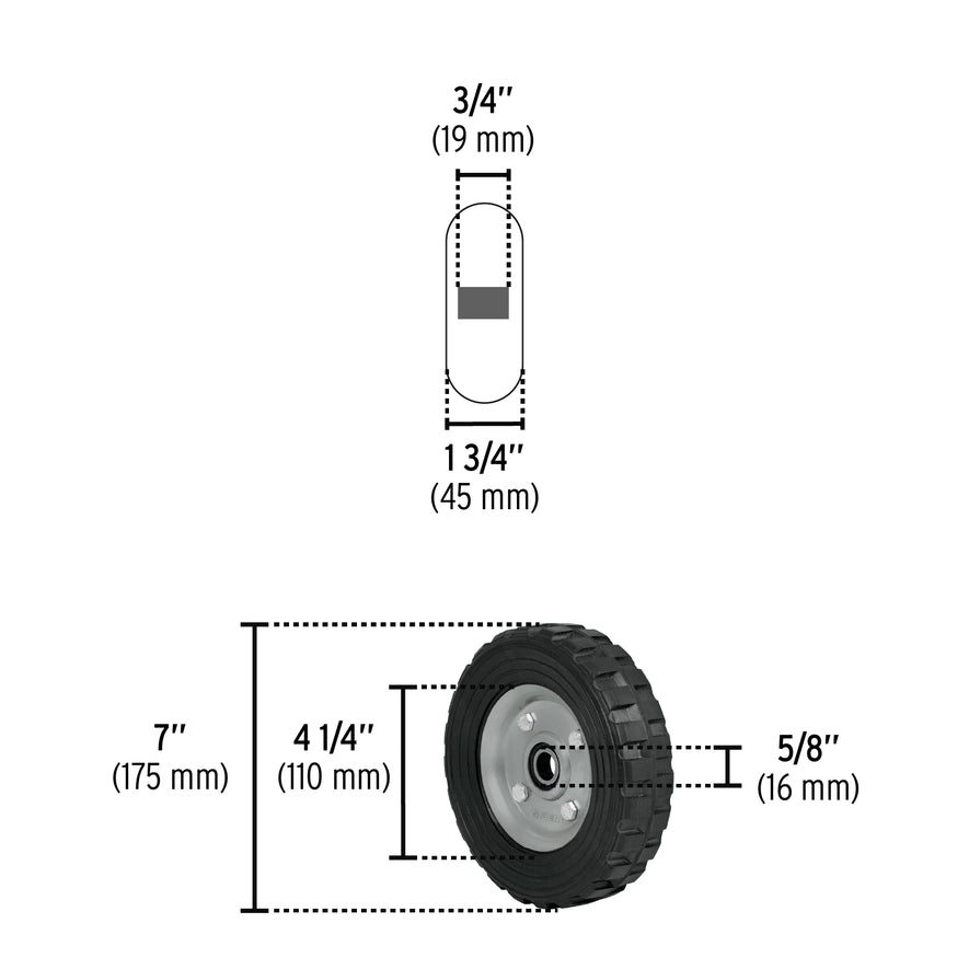 Rueda de hule sólido 7' para diablo, un balero, Pretul Caja con 4, 45482