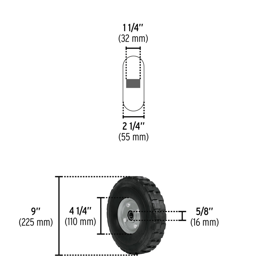 Rueda de hule sólido 9' para diablo, doble balero, Pretul Caja con 4, 45487