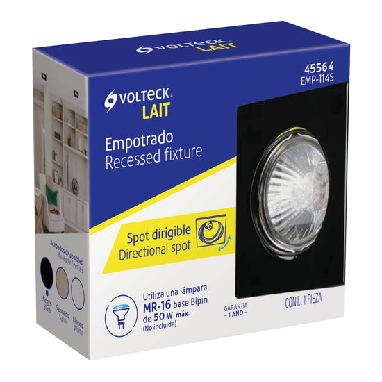 Luminario cuadrado negro spot dirigible, lámpara no incluida Caja con 4, 45564