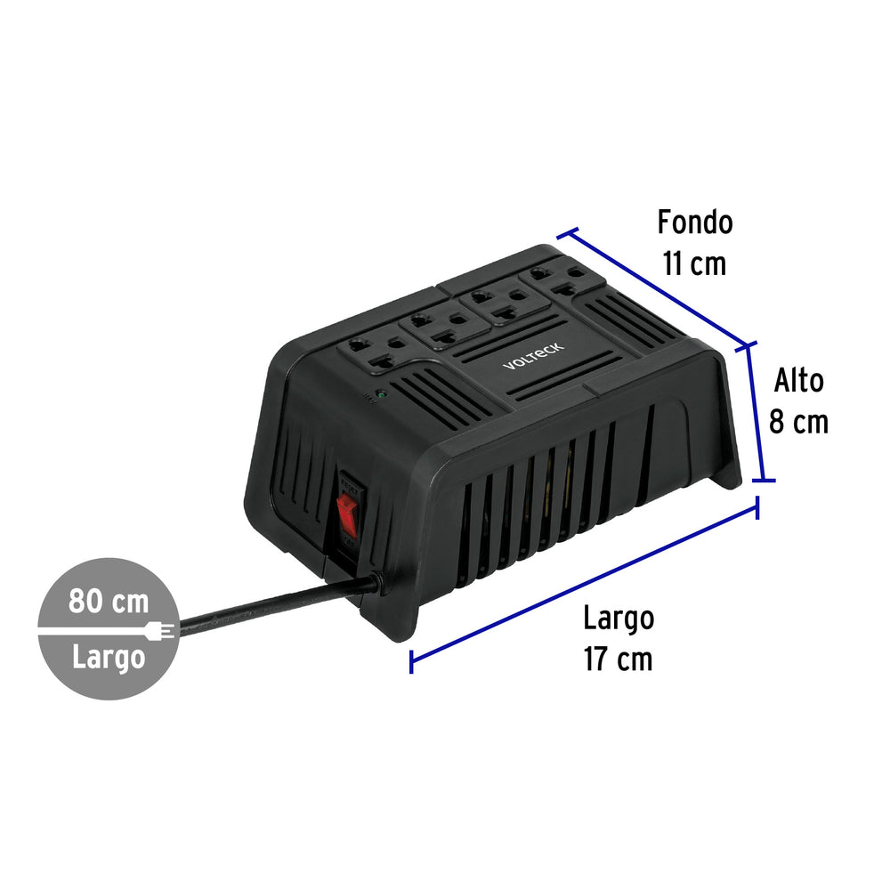 Regulador de voltaje de 800 VA / 400 W 4 contactos, Volteck, 45572