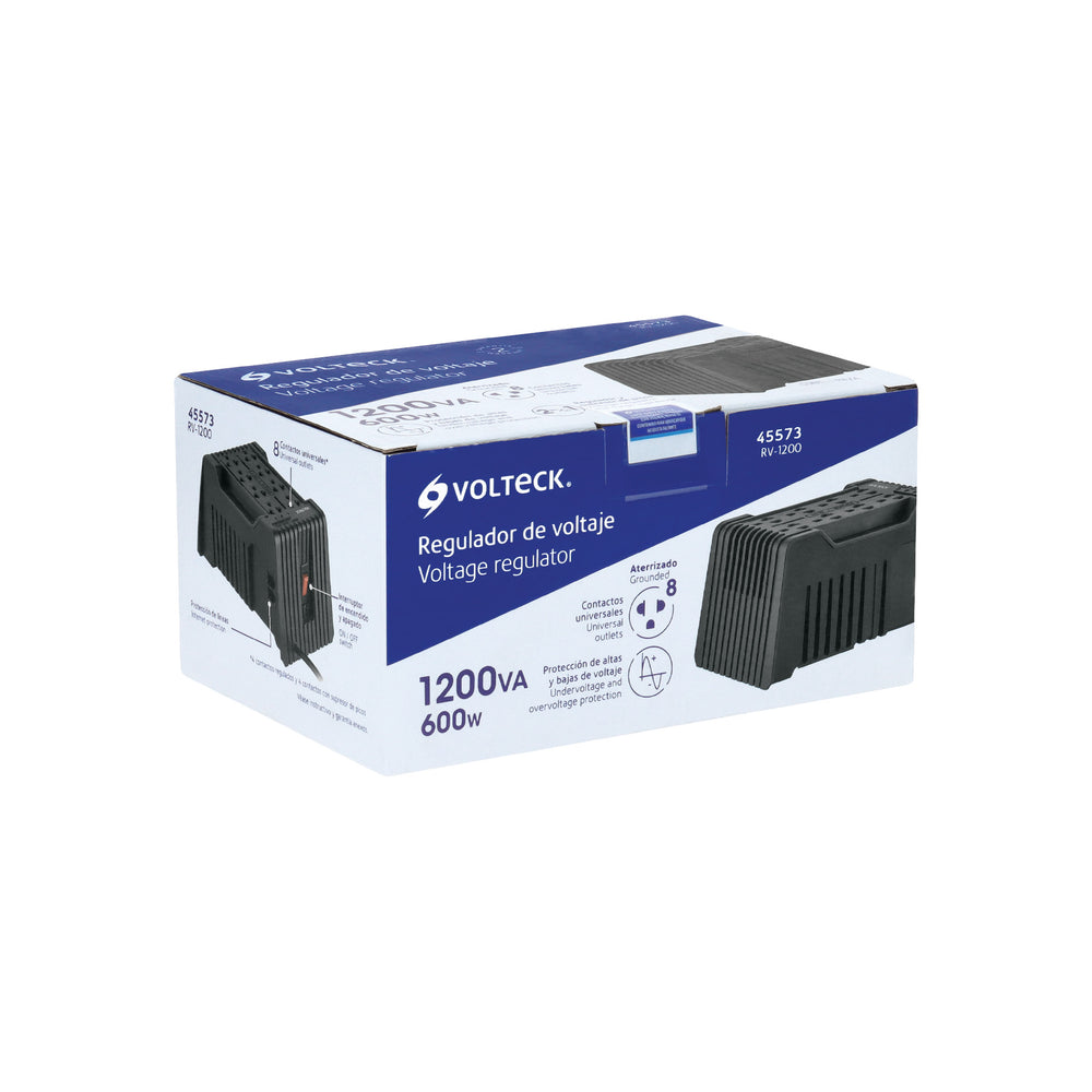 Regulador de voltaje de 1200 VA / 600 W 8 contactos, Volteck, 45573