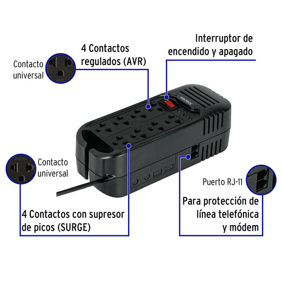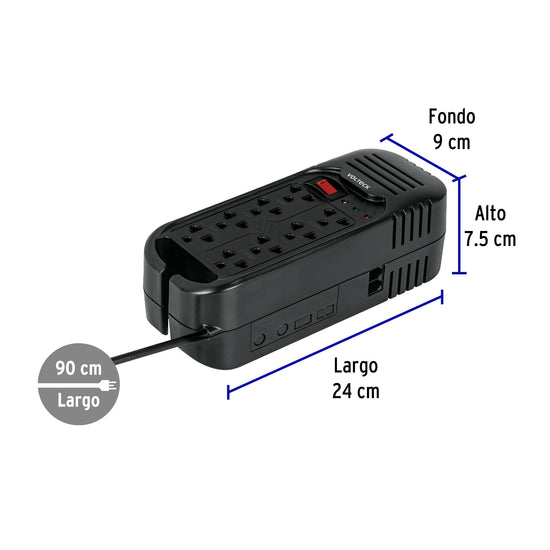Regulador de voltaje de 1600 VA / 800 W 8 contactos, Volteck, 45574