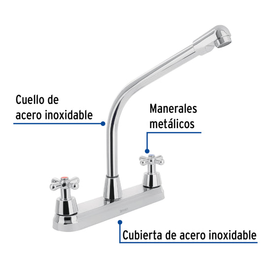 Mezcladora fregadero 8' cromo, cuello cobra, cruceta, AQUA Caja con 2, 45626