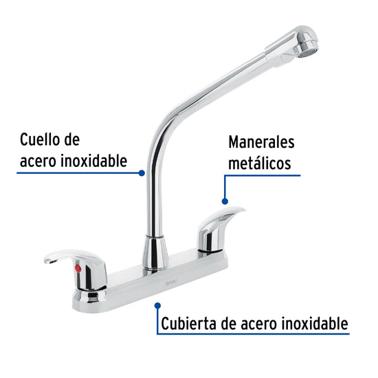 Mezcladora fregadero 8' cromo, cuello cobra, palanca, AQUA Caja con 2, 45627