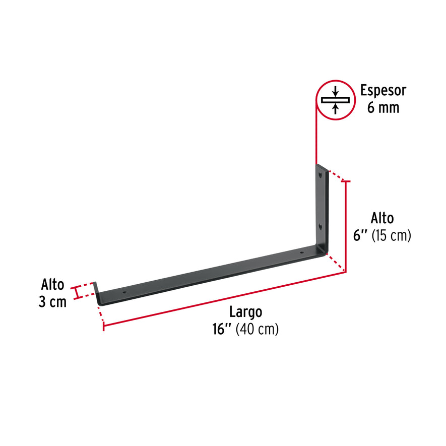 Ménsula vintage de acero negra 6 x 16', FIERO Caja con 10, 45867