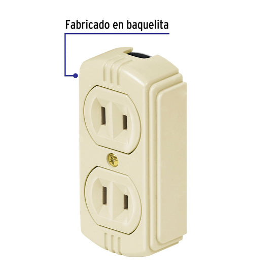 Contacto de sobreponer dúplex sin tierra, Volteck Caja con 10, 46106