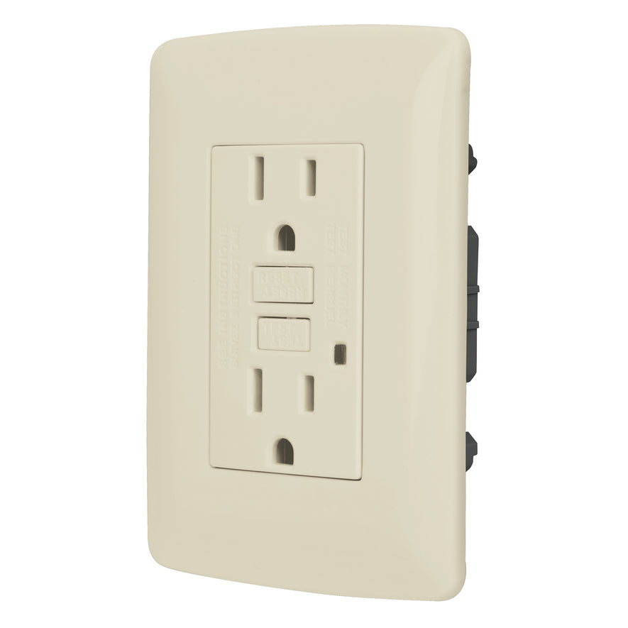 Contacto dúplex falla a tierra GFCI, marfil, línea Italiana Caja con 3, 46145