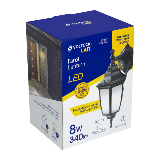 Arbotante de LED 8 W tipo farol suspendido negro, Volteck Caja con 2, 46342