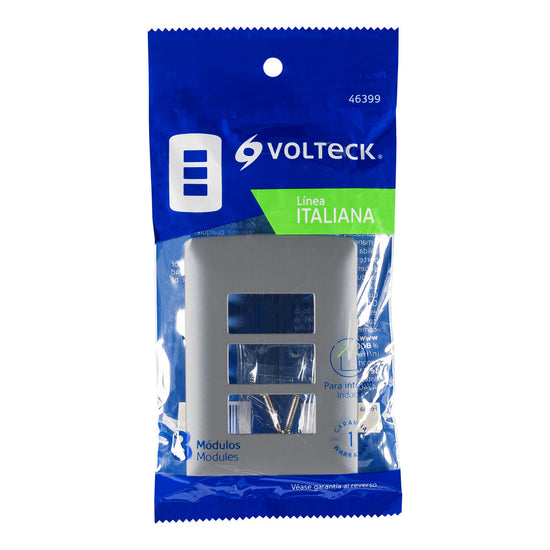 Placa 3 módulos de ABS, línea italiana, color plata, Volteck Caja con 12, 46399