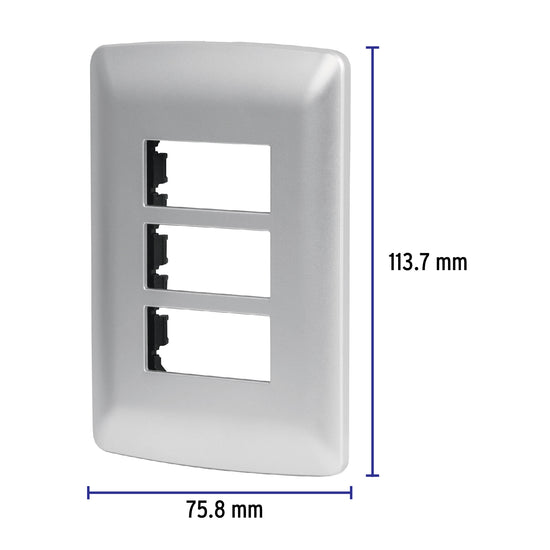 Placa 3 módulos de ABS, línea italiana, color plata, Volteck Caja con 12, 46399Placa 3 módulos de ABS, línea italiana, color plata, Volteck Caja con 12, 46399Placa 3 módulos de ABS, línea italiana, color plata, Volteck Caja con 12, 46399