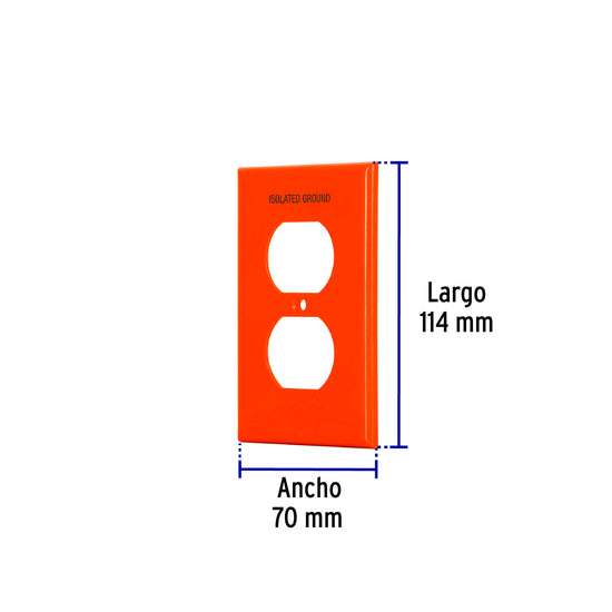 Diseñada para usarse con contactos dúplex tierra aislada ya que tiene grabada la leyenda "Isolated Ground" al frente
