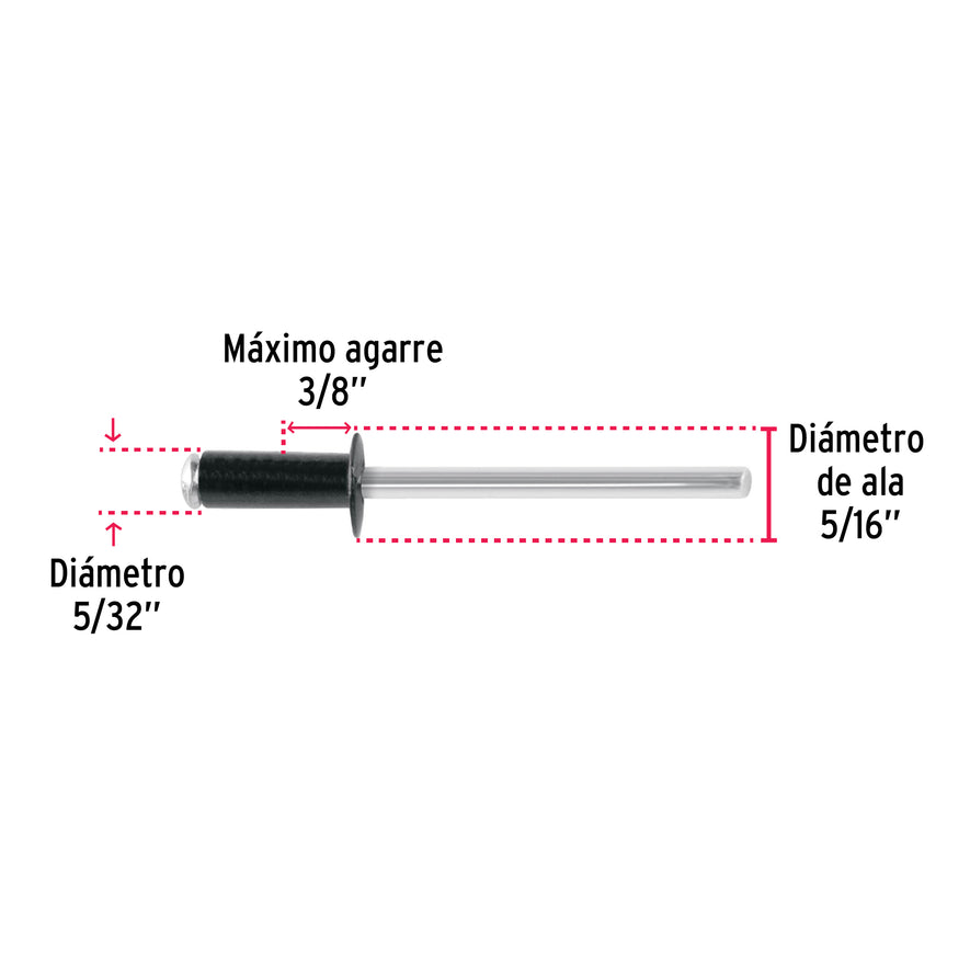 Bolsa c/50 remaches 5/32'x3/8' negros de aluminio, ala 5/16' Caja con 10, 46566