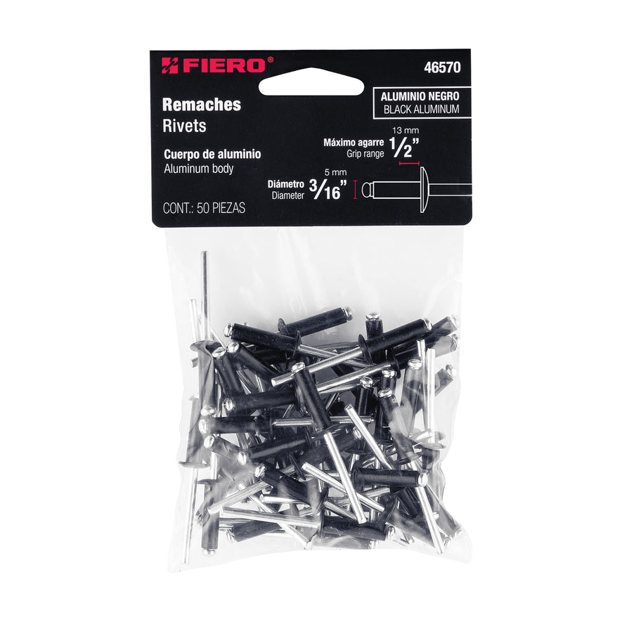 Bolsa c/50 remaches 3/16'x1/2' negros de aluminio, ala 3/8' Caja con 10, 46570Bolsa c/50 remaches 3/16'x1/2' negros de aluminio, ala 3/8' Caja con 10, 46570Bolsa c/50 remaches 3/16'x1/2' negros de aluminio, ala 3/8' Caja con 10, 46570
