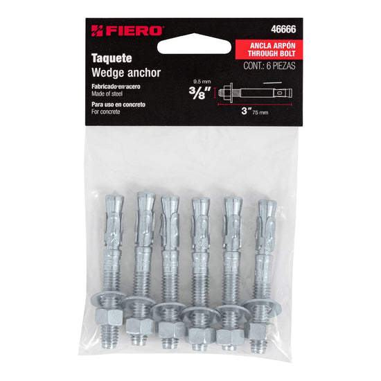 Bolsa con 6 taquetes arpón 3/8' x 3', Fiero Caja con 6, 46666