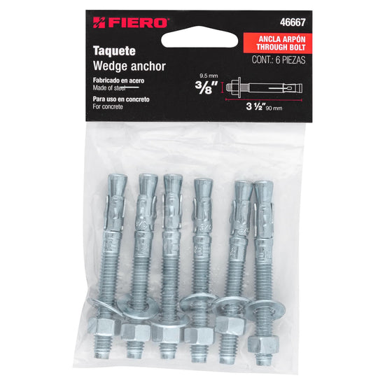 Bolsa con 6 taquetes arpón 3/8' x 3-1/2', Fiero Caja con 6, 46667