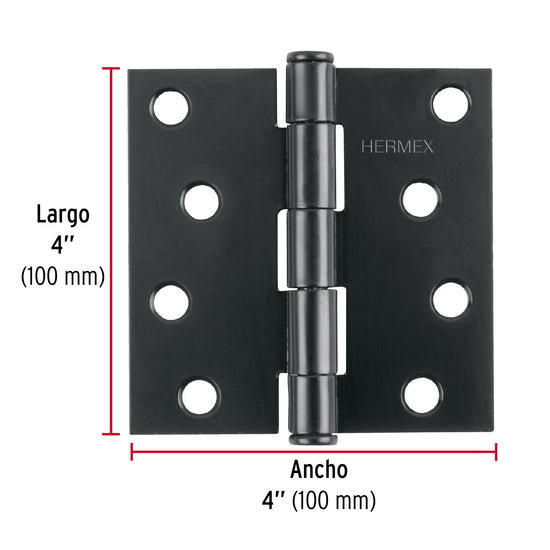 Bisagra cuadrada 4', negro mate, cabeza plana, Hermex Caja con 10, 46709
