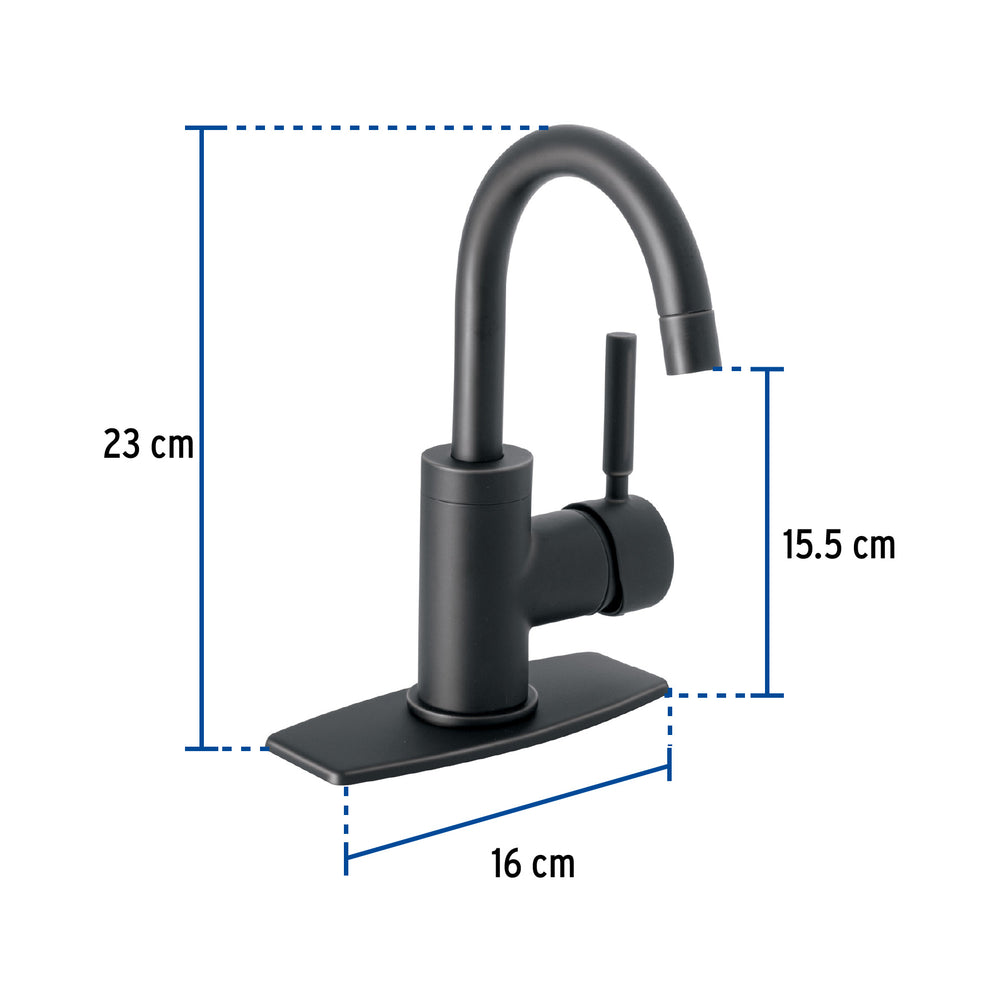 Monomando corto para lavabo, negro mate, Foset Tubig, 46764