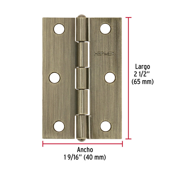 Bisagra rectangular 2-1/2' latón antiguo, Hermex Caja con 20, 46912Bisagra rectangular 2-1/2' latón antiguo, Hermex Caja con 20, 46912