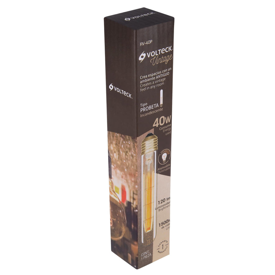 Lámpara incandescente vintage 40 W tipo probeta, Volteck Caja con 4, 47106