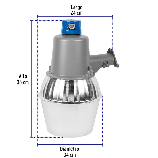 - Ideal para iluminar áreas perimetrales como residencias, comercios, estacionamientos y zonas de descarga