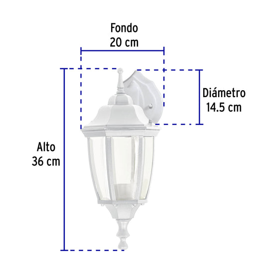Arbotante tipo farol tradicional suspendido p/exterior, bco., 47290