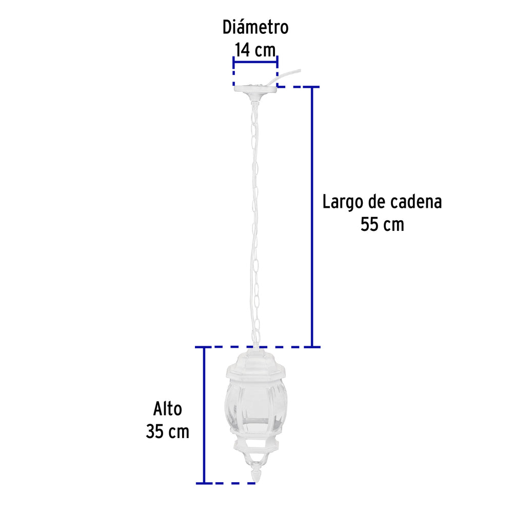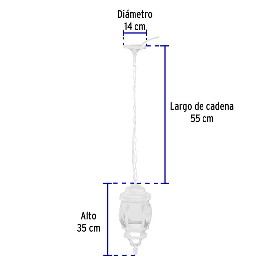 Arbotante tipo farol tradicional colgante p/exterior, blanco, 47296