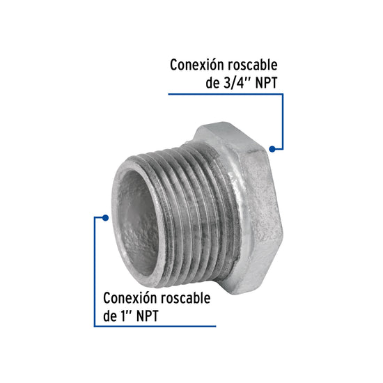 Reducción bushing acero galvanizado 1'x 3/4', Foset Caja con 10, 47505