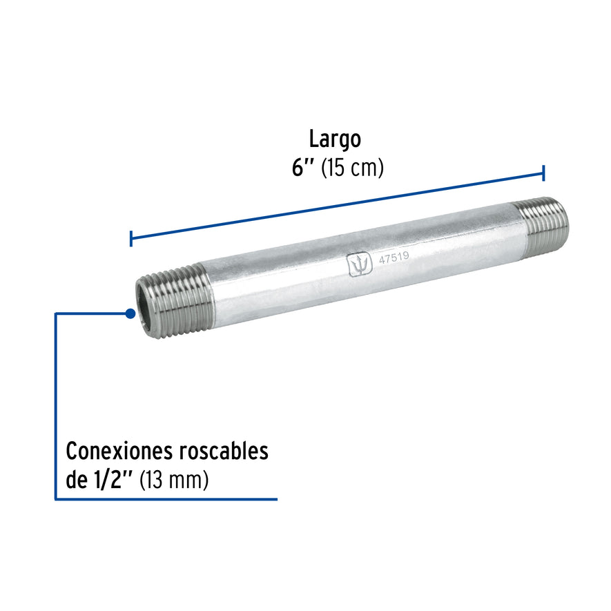 Niple de acero galvanizado 1/2' x 6', Foset Caja con 5, 47519Niple de acero galvanizado 1/2' x 6', Foset Caja con 5, 47519