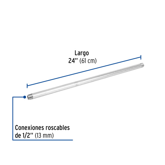 Niple de acero galvanizado 1/2' x 24', Foset Caja con 4, 47523Niple de acero galvanizado 1/2' x 24', Foset Caja con 4, 47523