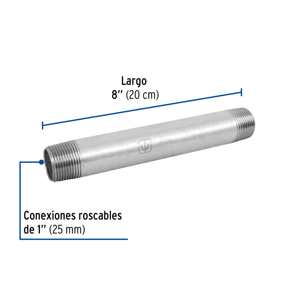 Niple de acero galvanizado 1' x 8', Foset Caja con 5, 47535Niple de acero galvanizado 1' x 8', Foset Caja con 5, 47535