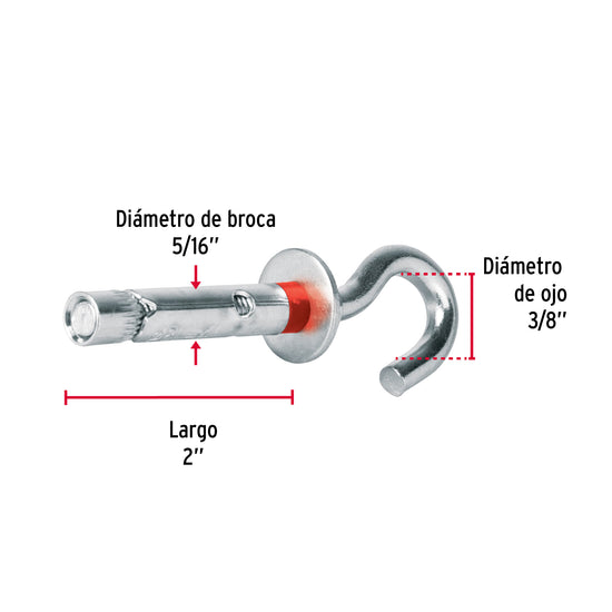 Bolsa con 4 taquetes expansivos 8x50 mm con armella abierta Caja con 6, 47564