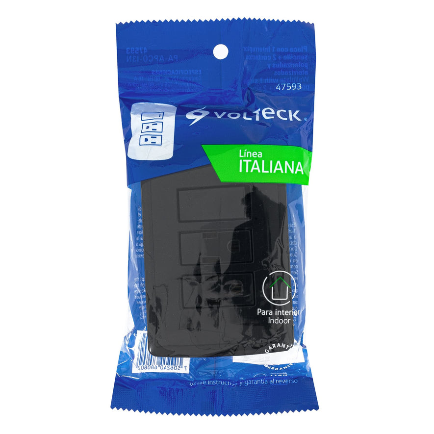 Placa armada 2 contactos e interruptor,negro, línea Italiana Caja con 3, 47593Placa armada 2 contactos e interruptor,negro, línea Italiana Caja con 3, 47593Placa armada 2 contactos e interruptor,negro, línea Italiana Caja con 3, 47593