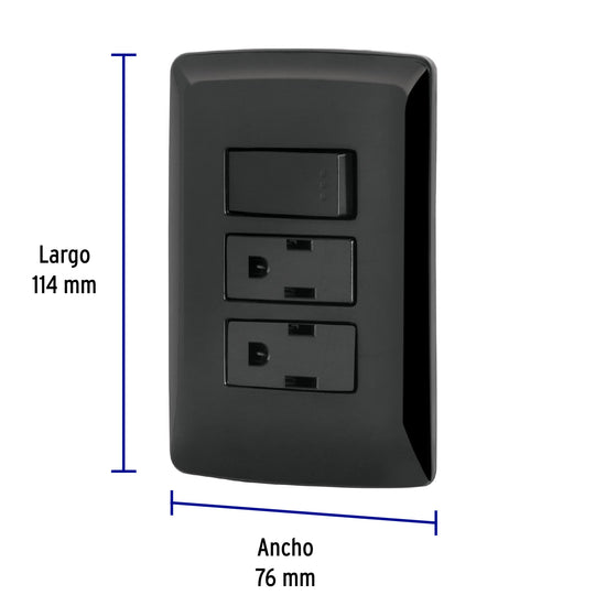 1 Interruptor y 2 contactos con retardante a la flama para mayor seguridad