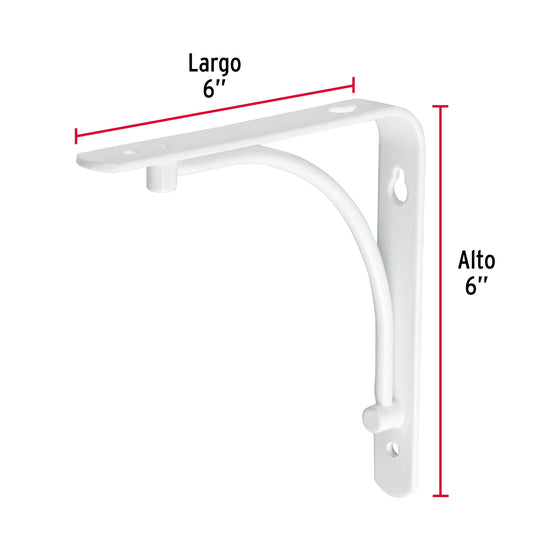 Ménsula reforzada blanca 6 x 6' diseño alambrón, Fiero Caja con 10, 47692Ménsula reforzada blanca 6 x 6' diseño alambrón, Fiero Caja con 10, 47692