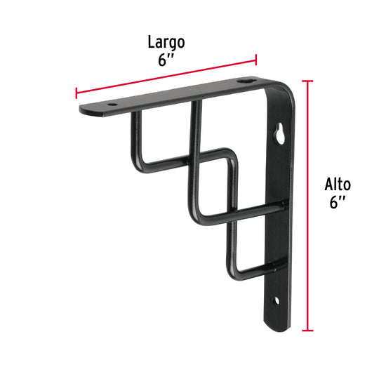 Ménsula reforzada negra 6 x 6' diseño escalera, Fiero Caja con 10, 47702