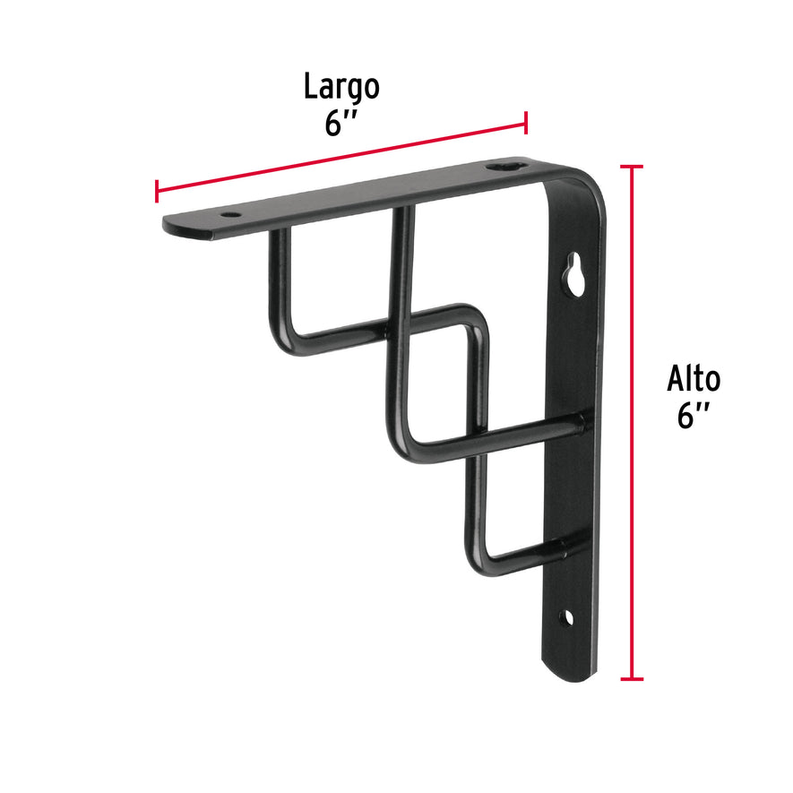 Ménsula reforzada negra 6 x 6' diseño escalera, Fiero Caja con 10, 47702Ménsula reforzada negra 6 x 6' diseño escalera, Fiero Caja con 10, 47702