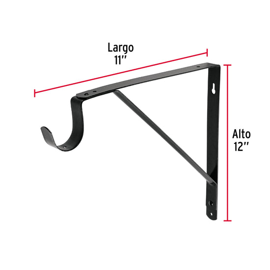 Ménsula reforzada negra 11 x 12' con gancho, Fiero Caja con 4, 47707