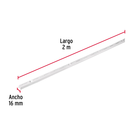 Cremallera sencilla blanca para ménsulas planas, 2m, Fiero Caja con 10, 47712