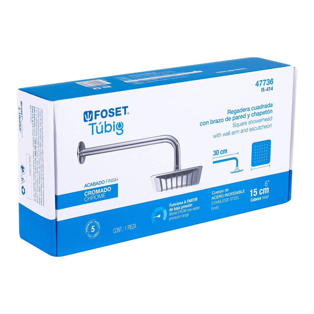 Regadera cuadrada 6', acero inox, con brazo, cromo, Túbig Caja con 2, 47736Regadera cuadrada 6', acero inox, con brazo, cromo, Túbig Caja con 2, 47736Regadera cuadrada 6', acero inox, con brazo, cromo, Túbig Caja con 2, 47736