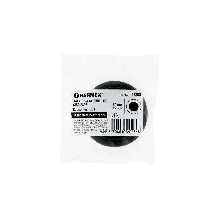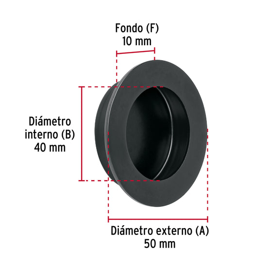 Jaladera de embutir circular No. 4 acabado negro Caja con 10, 47803