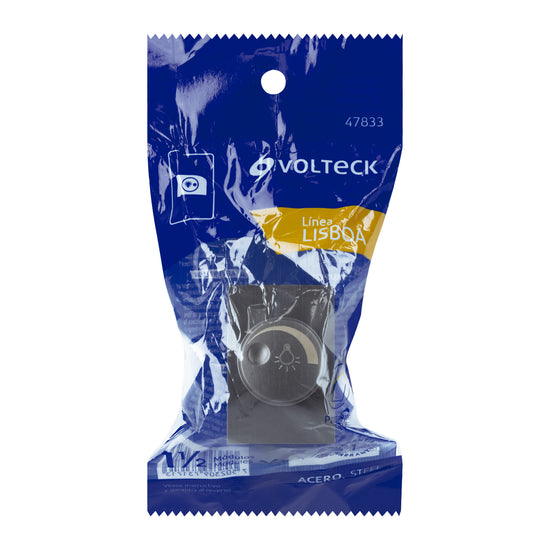 Dimmer giratorio acero inox de 1.5 módulos, línea Lisboa Caja con 12, 47833Dimmer giratorio acero inox de 1.5 módulos, línea Lisboa Caja con 12, 47833Dimmer giratorio acero inox de 1.5 módulos, línea Lisboa Caja con 12, 47833