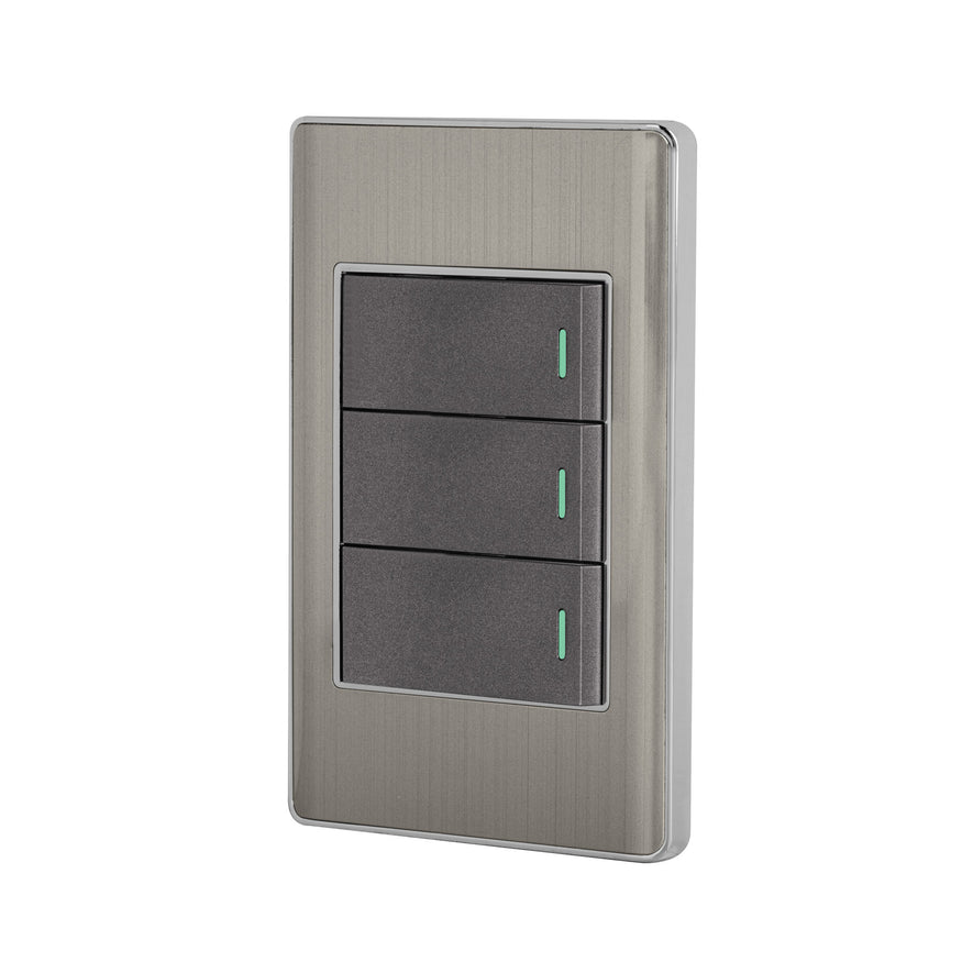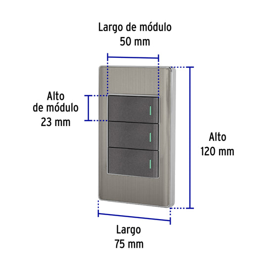 Placa armada acero 2 interruptores 1 de 3 vías 1 mód,Lisboa Caja con 3, 47837Placa armada acero 2 interruptores 1 de 3 vías 1 mód,Lisboa Caja con 3, 47837