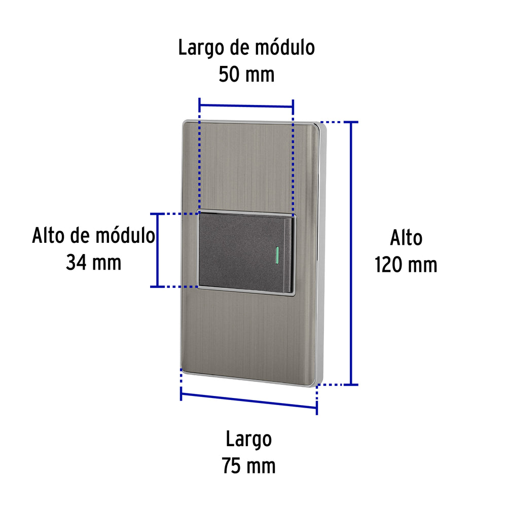 Placa armada acero inox 1 interruptor 1.5 módulos, Lisboa Caja con 3, 47838