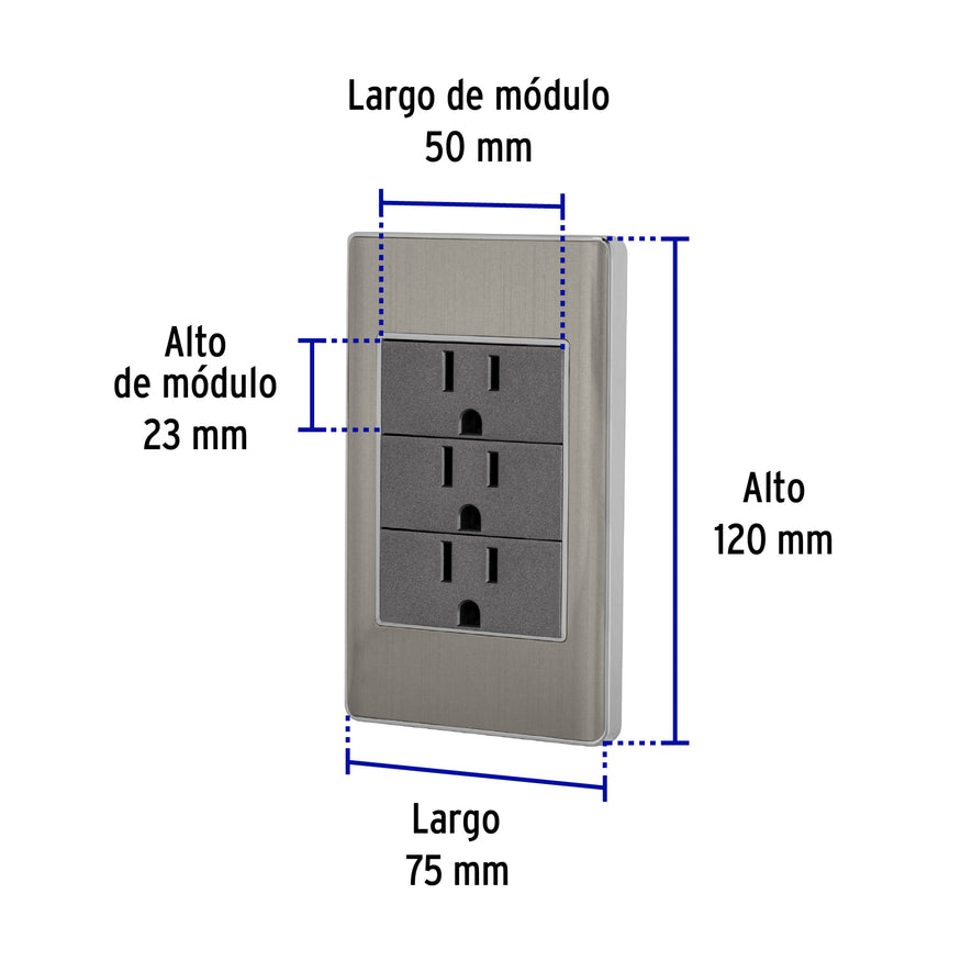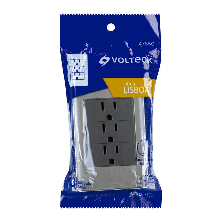 Placa armada acero inox 3 contactos 1 módulo, Lisboa Caja con 3, 47850Placa armada acero inox 3 contactos 1 módulo, Lisboa Caja con 3, 47850Placa armada acero inox 3 contactos 1 módulo, Lisboa Caja con 3, 47850