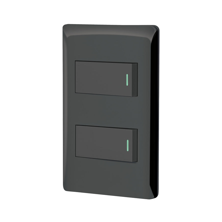 Placa armada negra con 2 interruptores 1 módulo, Lisboa Caja con 3, 47887Placa armada negra con 2 interruptores 1 módulo, Lisboa Caja con 3, 47887